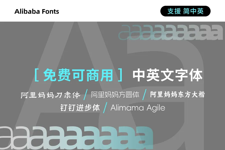 阿里巴巴可商用中英文本体是一套多款设计精美的字体,适用于各种文本布局和视觉设计需求。这套字体包括阿里妈妈刀隶体、阿里妈妈东方大楷、阿里妈妈灵动体(纯英文本体)、阿里妈妈方圆体和钉钉进步体。以下是这些字体的介绍: