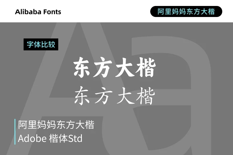 阿里妈妈东方大楷同样是一种毛笔书法字体的改良版,保留了许多毛笔书法的笔画,并在整体比例上进行了精致的调整。字的中宫稍微收紧,使整个字体与其他普通楷体相比更具生动感,非常适合展现国风皮肤或需要表达阳刚正气感的视觉设计活动。