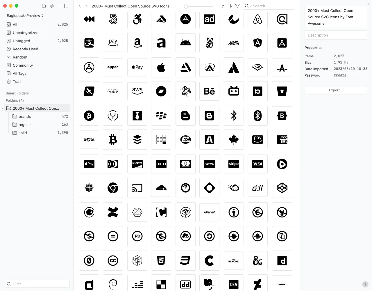 所以,不妨直接下载这个 Eaglepack,探索 400 多款品牌 Logo 图标和其他 2000 多款 SVG 图标,让你的设计流程更方便!