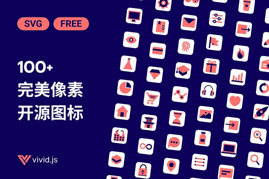 作为领先的开源图标库,Vivid.js 提供了 100 多个丰富而精心制作的图标,可供平面设计师与 UI 设计师使用。Vivid.js 的这组开源图标,独家结合了 Javascript 技术,可以完美集成到不同的设计流程中,使其成为不可或缺的设计资源!