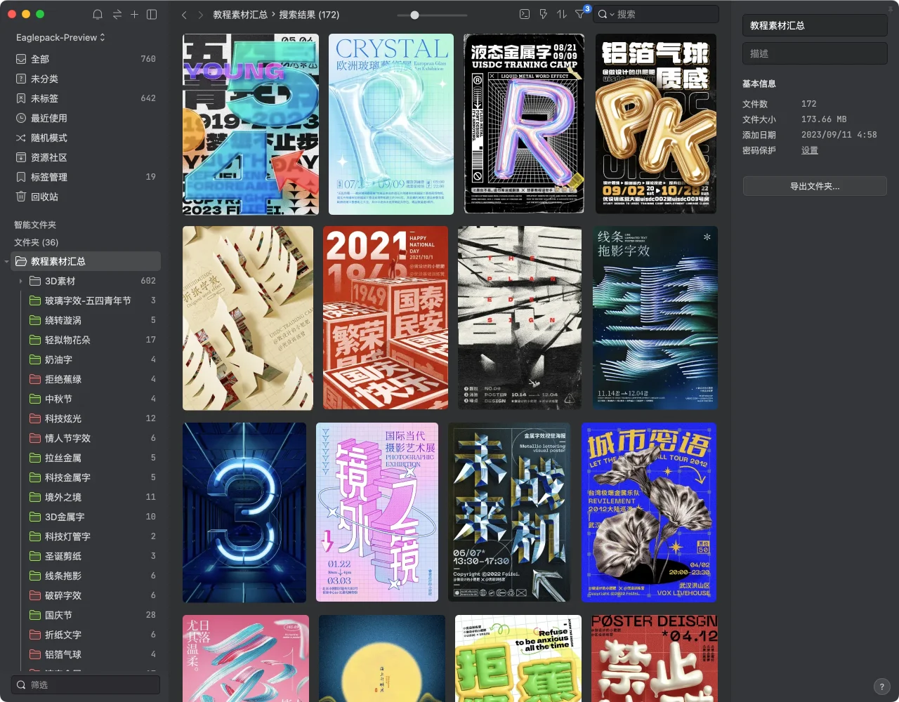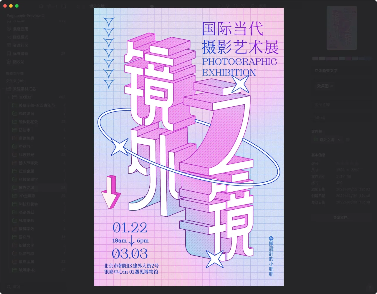 经常有粉丝宝贝问我哪里拿素材,这次有时间,终于把往期发布的所有案例素材全都打包整理了。每个案例都用文件夹分类,里面有对应的效果图/字体/素材等等。