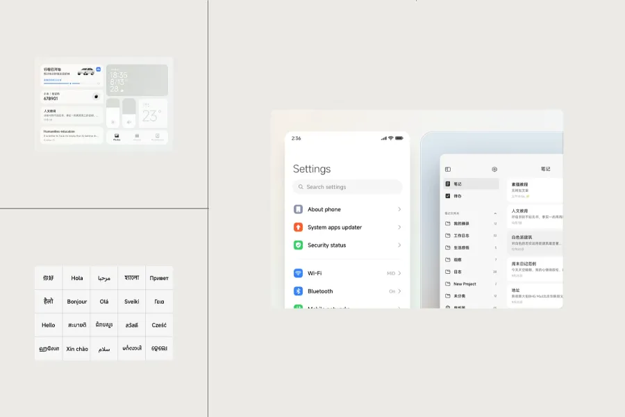 作为 Xiaomi HyperOS 系统默认字体,以简约/清晰,人文/易读,统一的视觉风格为基本原则出发,构建多语言信息体验一致性,为 Xiaomi HyperOS 提供互联的通用体验。