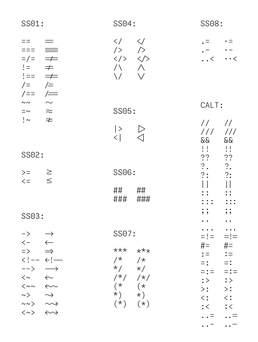 有八组编码连字,分为风格集。您可以选择性地启用或禁用各个设置: