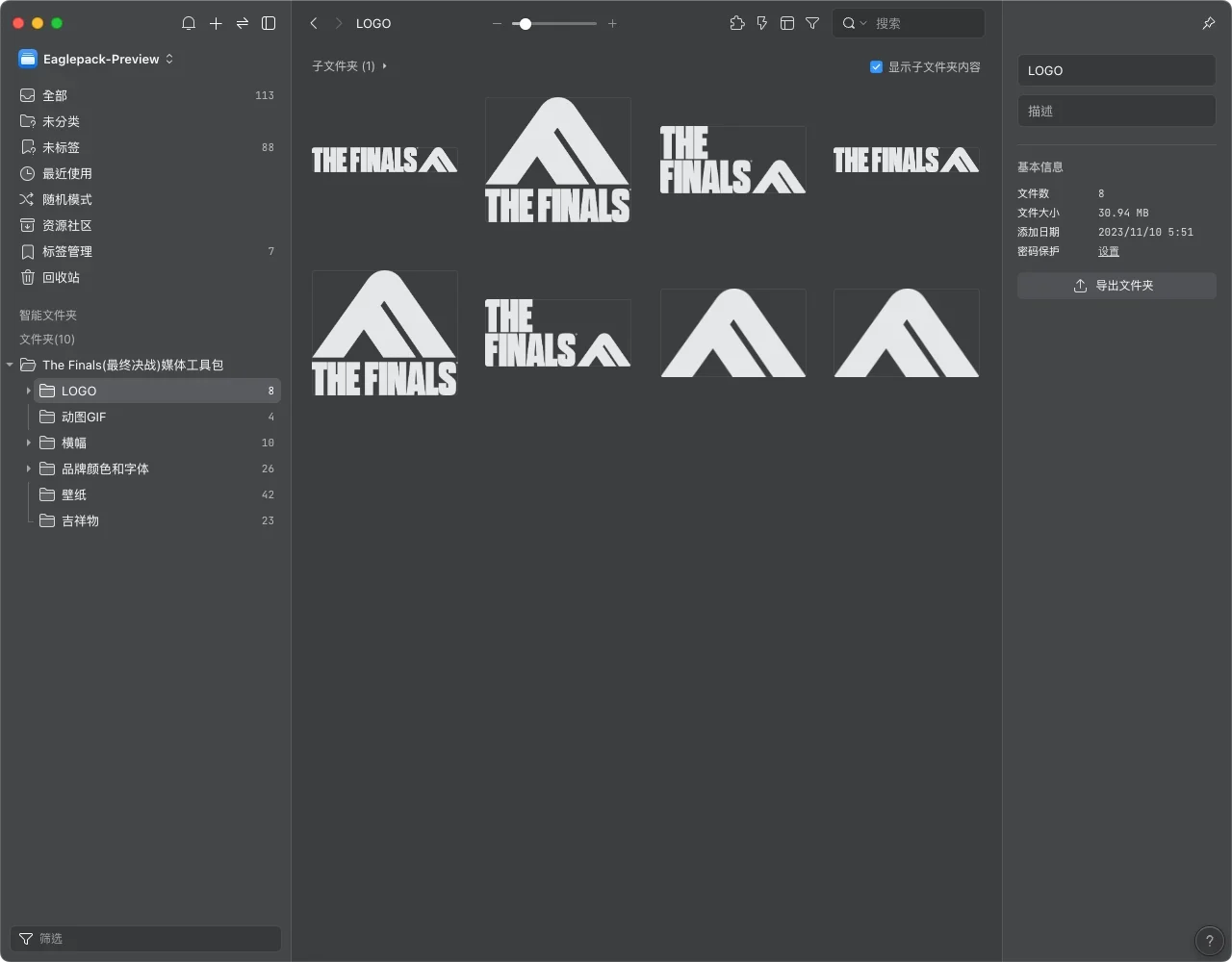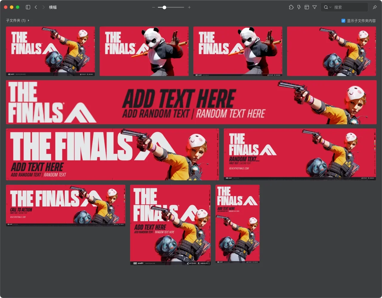 这是The Finals游戏官方为媒体创作者准备的媒体工具包、包括logo、颜色规范、字体、横幅、壁纸、吉祥物等素材,部分包含PSD源文件。