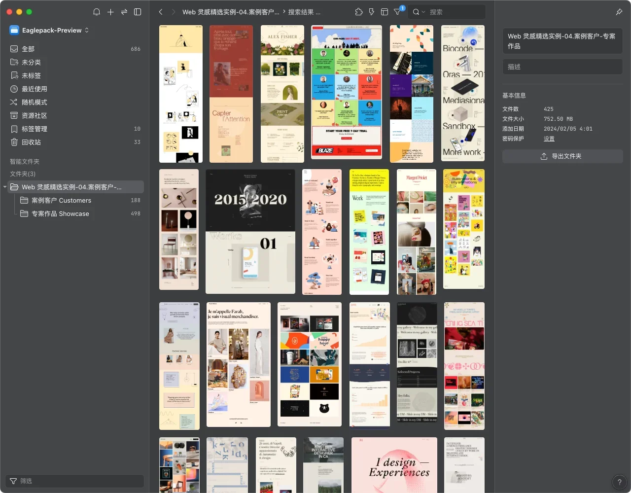 【Web 灵感精选】的第四篇的分享是案例客户(Customers)和专案展示(Showcase),会挑选这两款类型一起分享,是源于在网页设计上这两个页面类型的设计目的都是为了“作品展示”,在布局设计和规划蛮相似,也有许多能互相参考学习的地方。前几次的分享页面多是软件、SaaS 等相关网站,可以看到这次的来源网站多是以代理机构、设计公司或是个人作品集为主,也不少是电商和贩售设计素材等。整体布局和配色相比也更活泼和多变。新的一年到来,如果你正好也想整理自己的作品集或是为公司、品牌做个展示页面的更新,这次分享的 Eaglepack 灵感包真的很值得收藏。