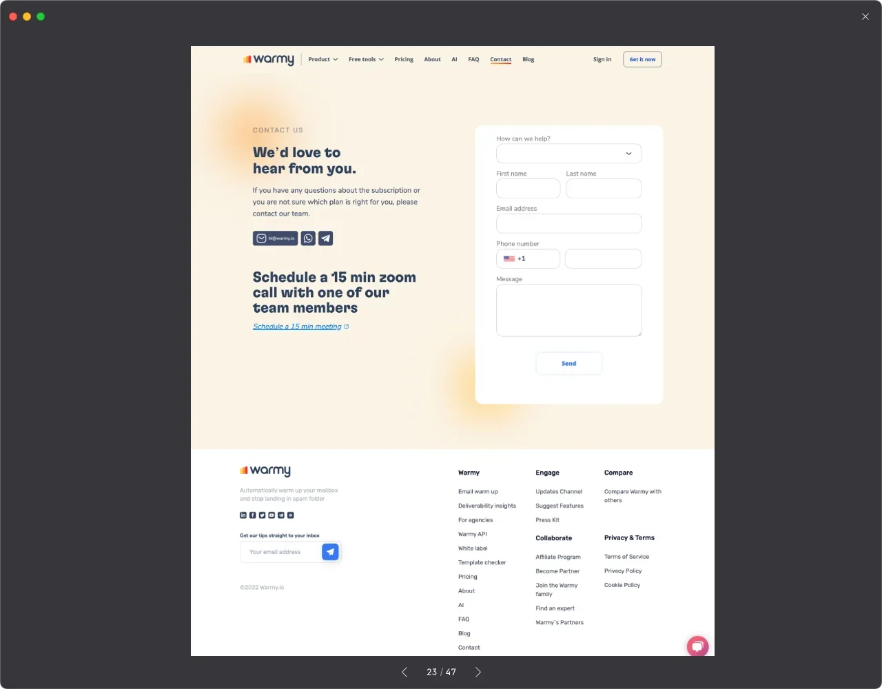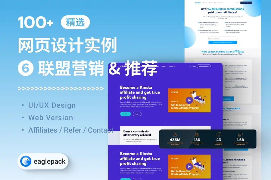 搜藏百张网页设计灵感,包括各页精选联盟营销、推荐好友,和简洁清晰的联系方式提升品牌信任。