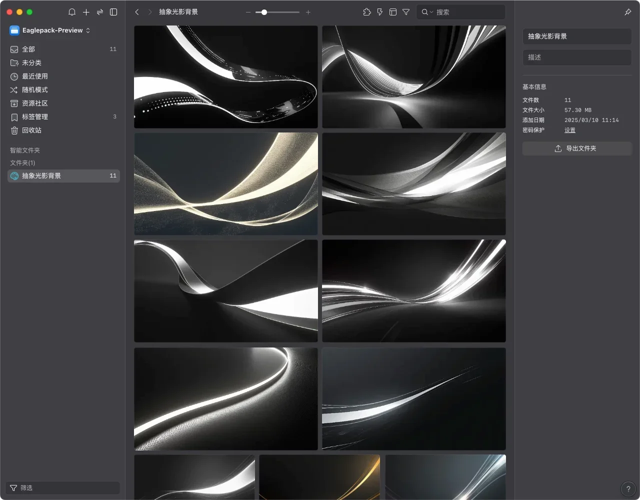 背景;抽象光影,黑色背景,光带,柔和曲线,科技感