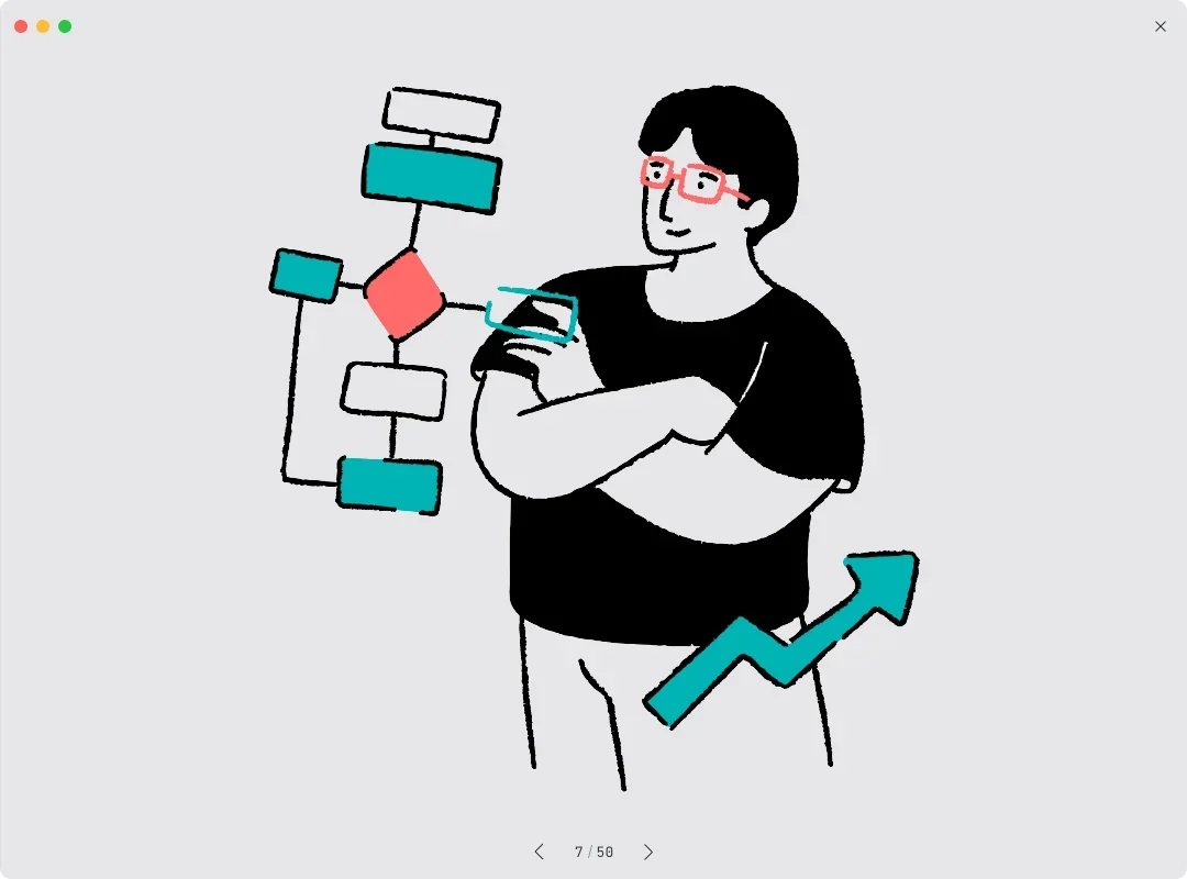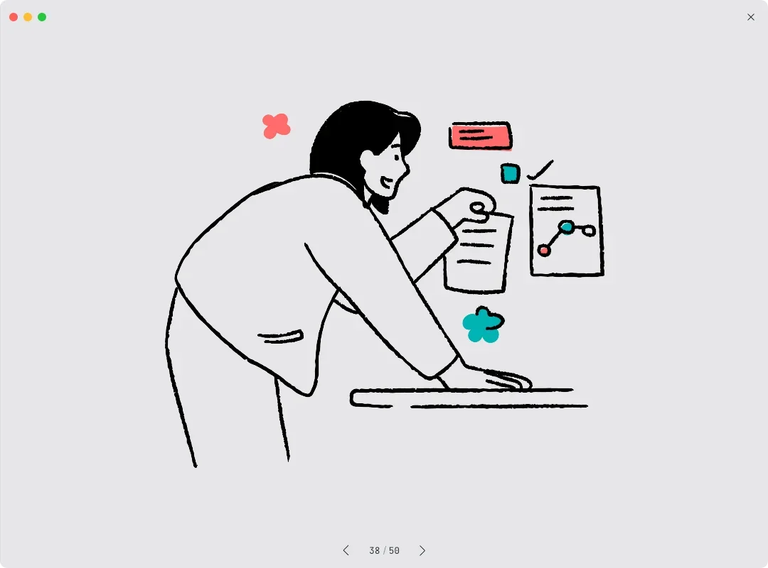 这次要分享的,同样是 Getillustrations、我另外整理的**线条插画资源包**。这系列的插画都以干净利落的线条为核心,搭配低彩度或留白处理,营造出简约、专业却不失现代感的氛围。相比缤纷或厚重的插画风格,线条插画的好处在于能自然融入各种设计场景,不会喧宾夺主,却能提升整体质感。