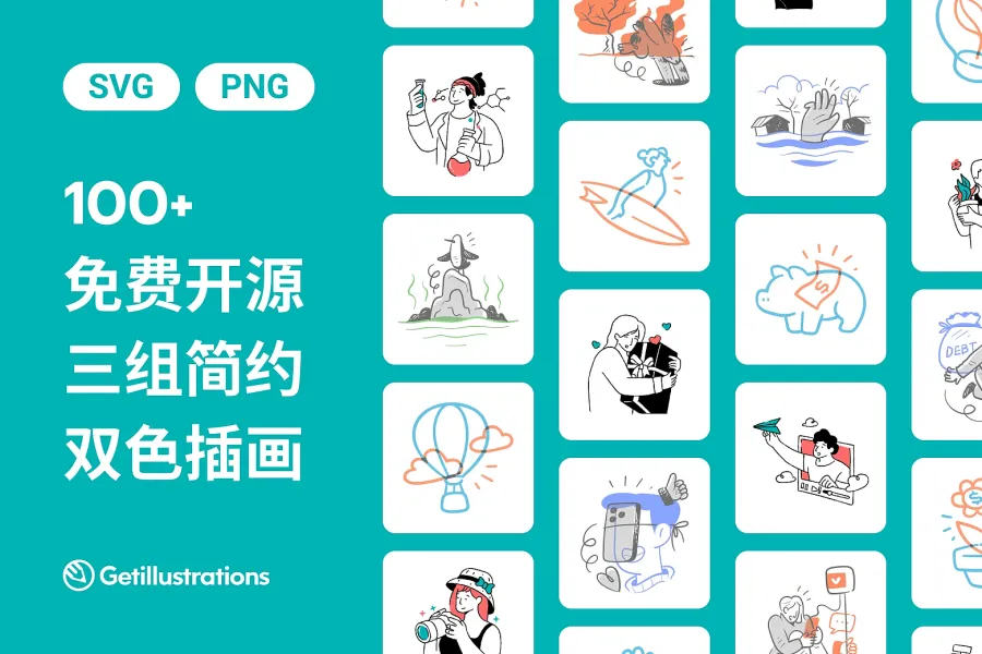 ## 来自 Getillustrations,免费且可商业使用的插画资源
