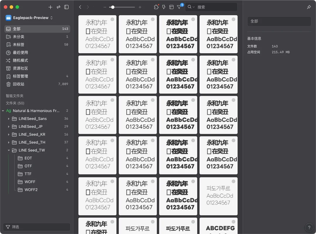 透过下载 Eaglepack,即可一次完整收藏全语系、全字重的 LINE Seed。这是一款可商用、兼具理性与感性,同时兼顾美感与易读性的字体,能自然和谐地应用于英、日、韩、泰、中五种语系,是非常值得收藏与使用的字体资源。