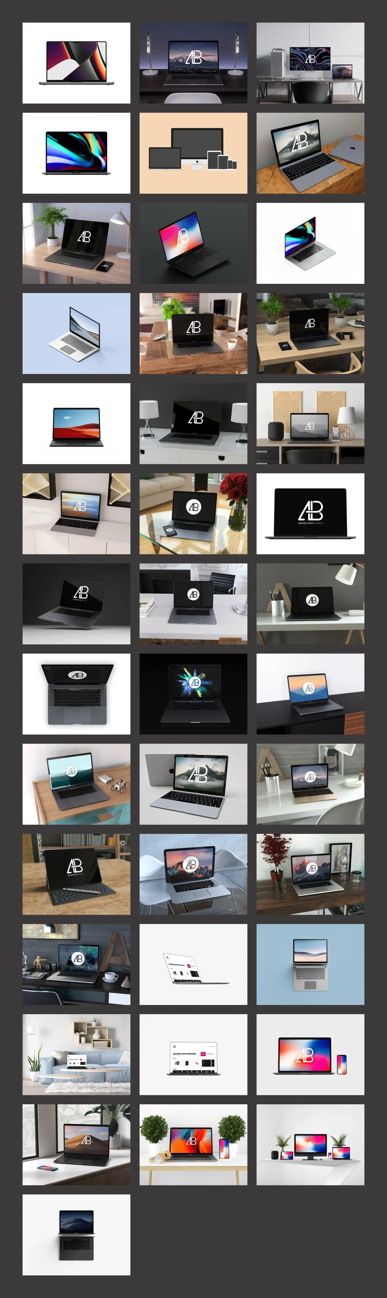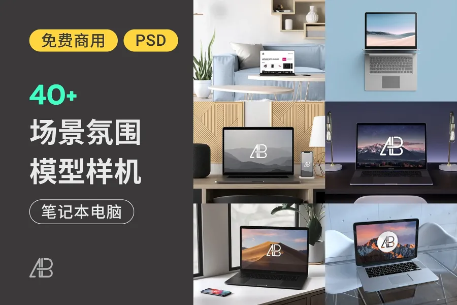 想要找带有背景的高品质笔电样机,以节省你的设计工作时间吗?美国一位 23 岁的平面设计师 Anthony Boyd 提供了多款精美的免费模型素材供大家下载使用,而且所有素材都以 PSD 提供,让你可以直接导入 Photoshop 来编辑使用,十分方便!