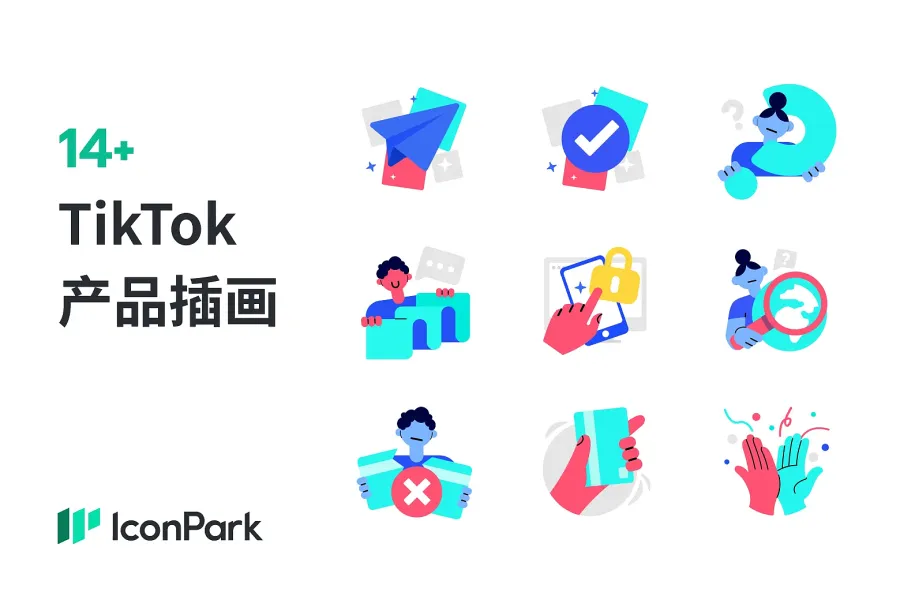 其中 IconPark 最近创造了一个插画系列,以 TikTok 的理念风格为主,希望能让品牌显得更年轻和有活力。这个免费电商插图系列提供了 PNG 和 SVG 格式,可以免费编辑和下载,非常适合用于电子商务网站。