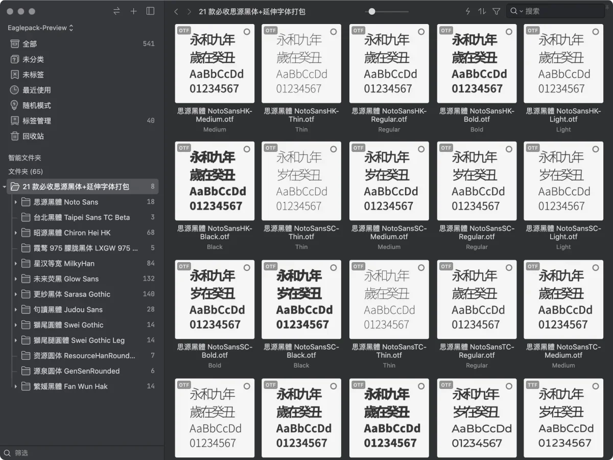 这个 Eaglepack 收集了 21 款字体,包括思源黑体、台北黑体、昭源黑体、句读黑体、繁媛黑体等,涵盖了设计中常见的各种字体需求,从轻巧感、流畅性到清晰度通通包办。今天就来下载这个 Eaglepack 吧,免费可商用!